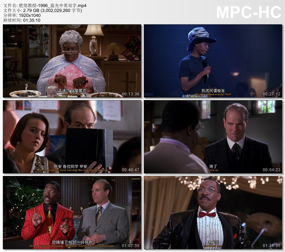 1996年美国6.3分喜剧片《肥佬教授》蓝光中英双字 高清迅雷下载